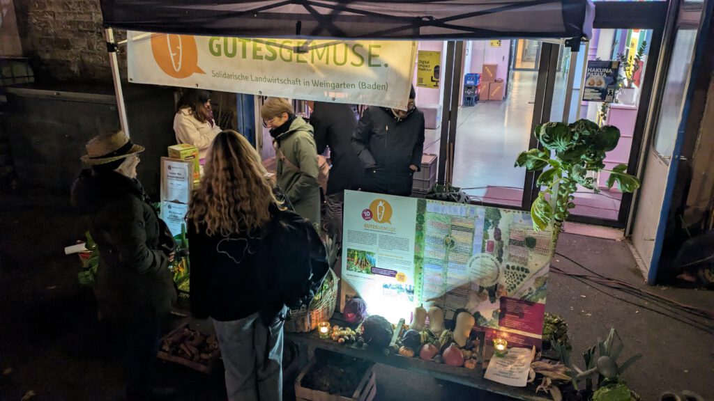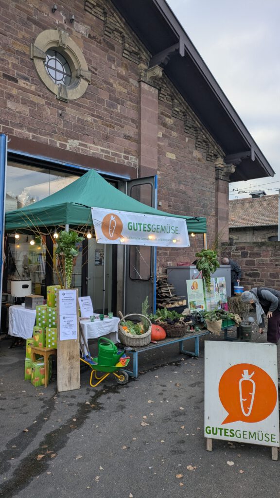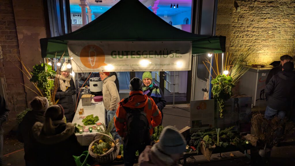 In den vergangenen Wochen waren wir mit „Gutes Gemüse“ auf Tour: Im November und Dezember haben wir unseren Acker in Weingarten kurzzeitig gegen den Asphalt auf dem Karlsruher Bauernmarkt (Alter Schlachthof) getauscht.